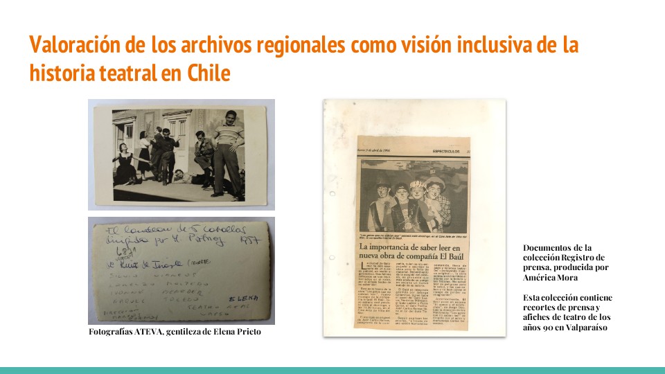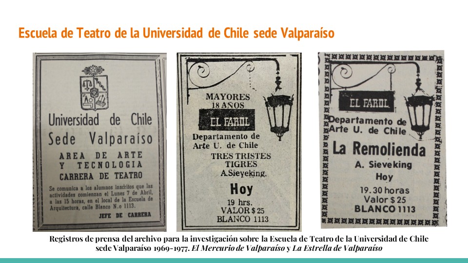 Todo lo anterior tiene el fin de desarrollar y estimular la investigación artística temprana (especialmente con estudiantes de pregrado) a partir del material a trabajar, con el fin de generar conocimiento desde los documentos archivados en el Centro, para así difundir las particularidades de los archivos de artes escénicas, su importancia para la historia, el patrimonio y la creación artística actual en Valparaíso y el país.